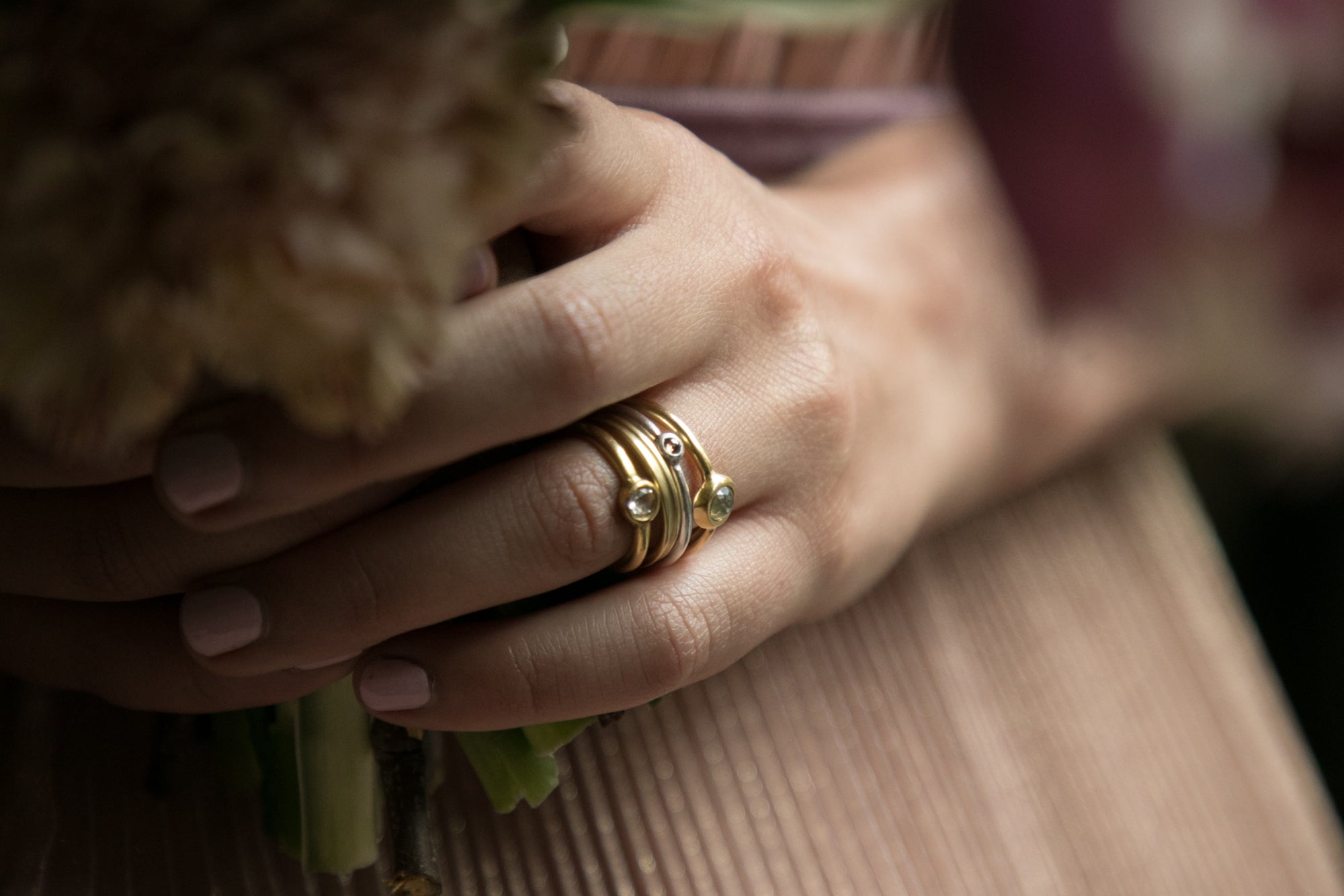 19k gold is an alloy containing gold, silver, and trace amounts of copper, and is not commercially available. Our special recipe, with its higher gold content, gives the gold a unique, rich color with a greenish hue.