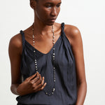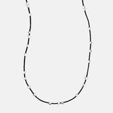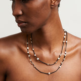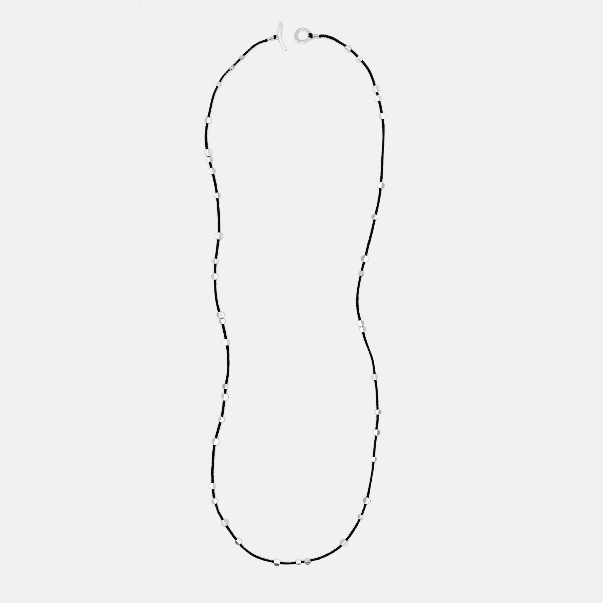 Sterling silver pieces on 44" crocheted cord with toggle clasp. May also be worn as a bracelet.