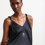2" x 1 1/4" sterling silver pendant on 31" hand crocheted cord with ring clasp
