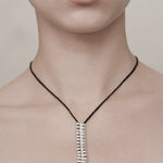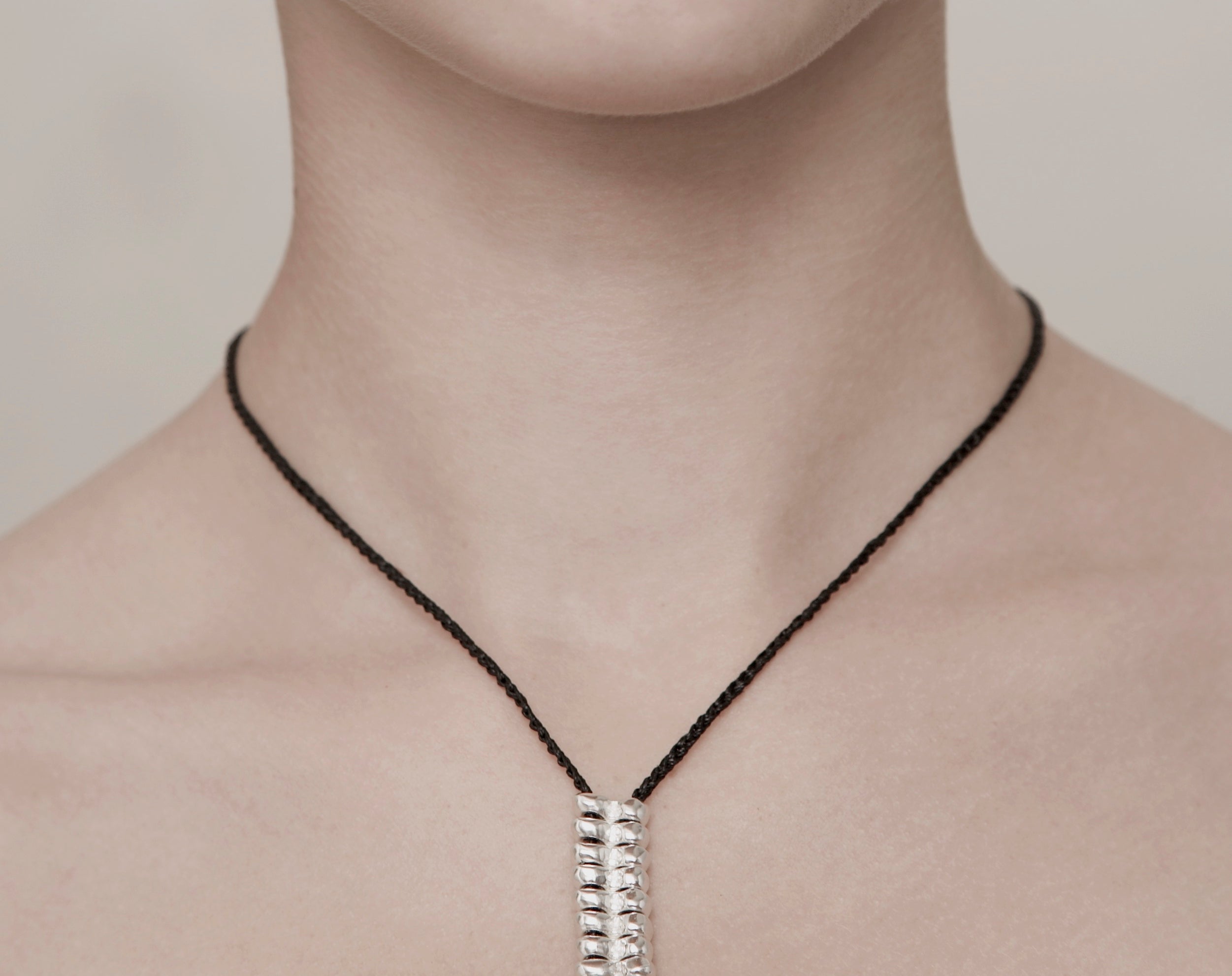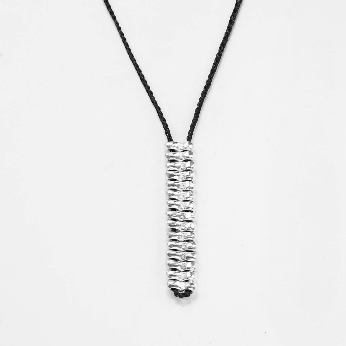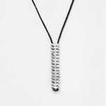 Sterling silver pieces on crocheted cord with toggle clasp.