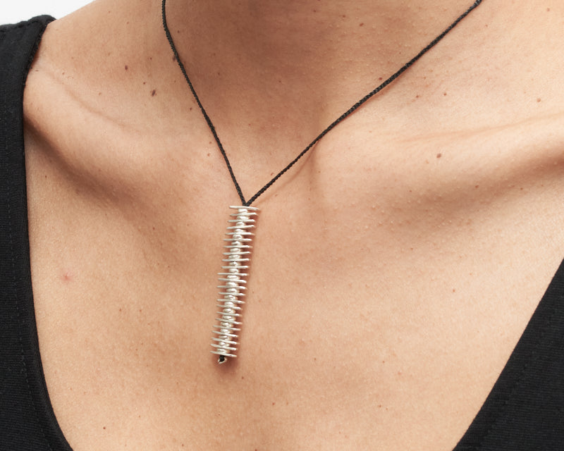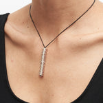 2" stacked sterling silver pendant on 17" hand crocheted cord with toggle clasp.